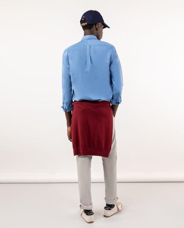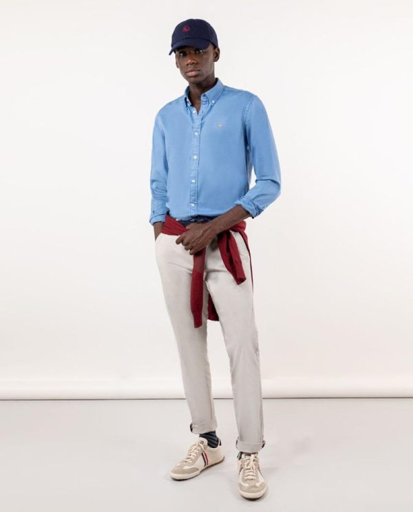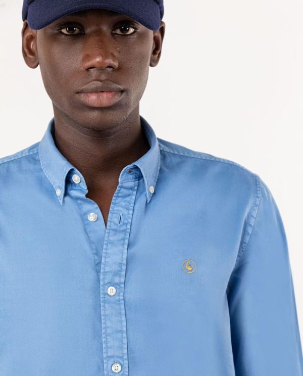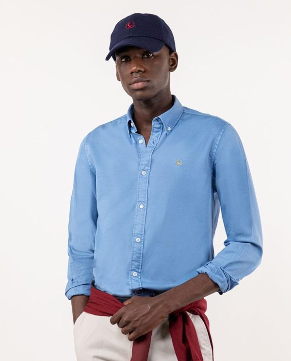 Camisa lisa twill de hombre confeccionada en 100% algodón y tintada en prenda.