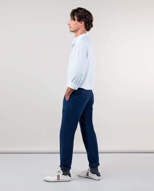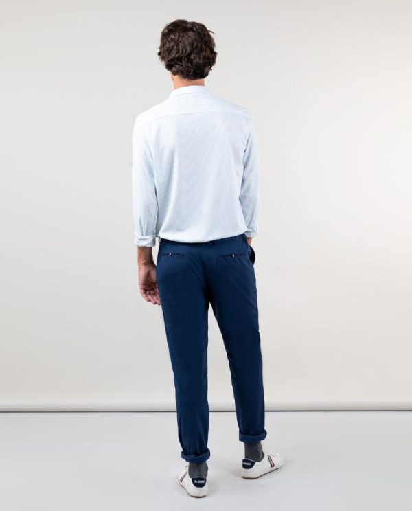 Pantalón liso de hombre confeccionado con tecnología de Sepiia en tejido 100% poliéster técnico antibacteriano reciclable.