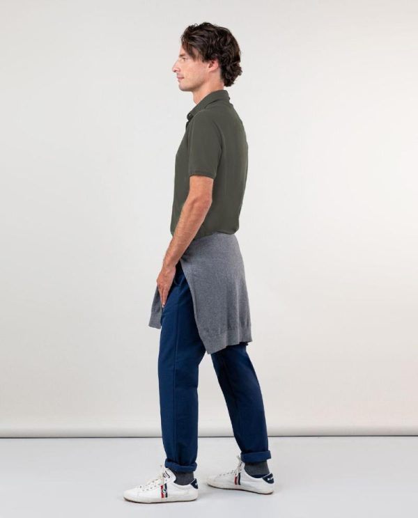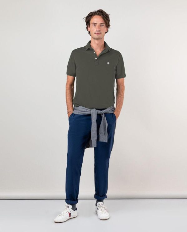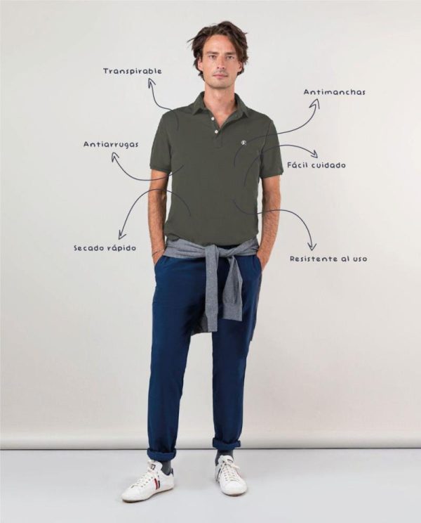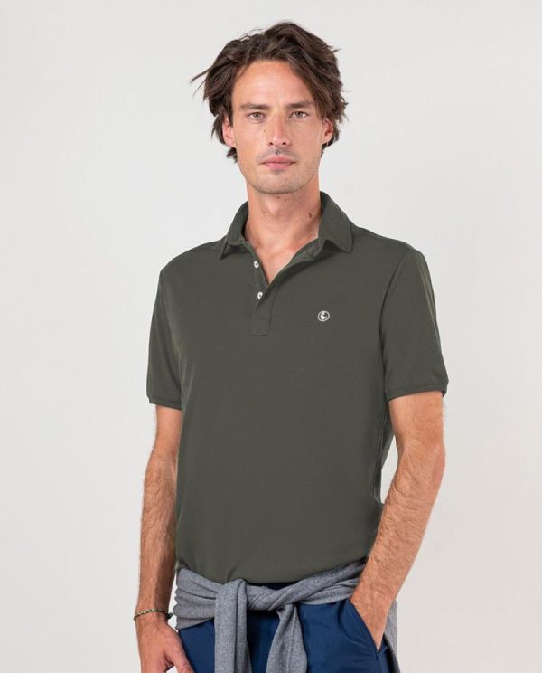 Polo de hombre liso con tecnología Sepiia de manga corta confeccionado en tejido 100% poliéster técnico antibacteriano reciclable.