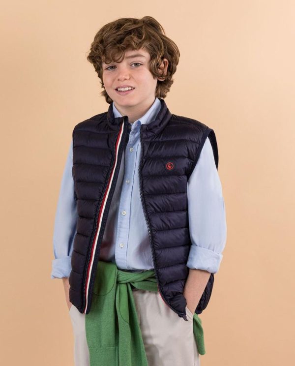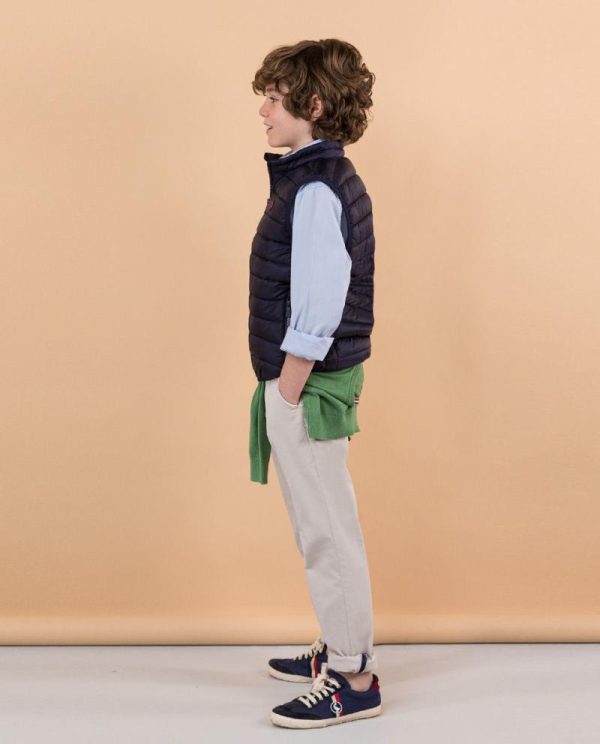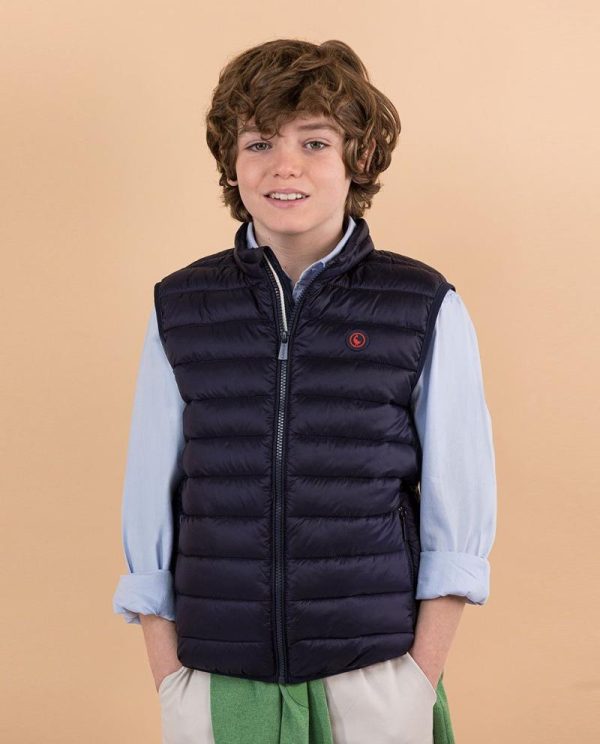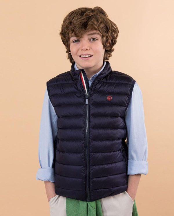 Chaleco de niño acolchado de nylon reciclado repelente al agua.